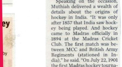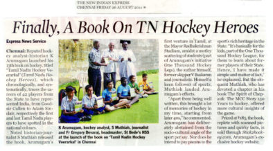 Report Courtesy: The Hindu, Chennai, 26th August 2011 Chennai: Author K. Arumugam’s Tamil book ‘Tamilnattin Hockey Veerargal’ (Tamil Nadu’s hockey ...
